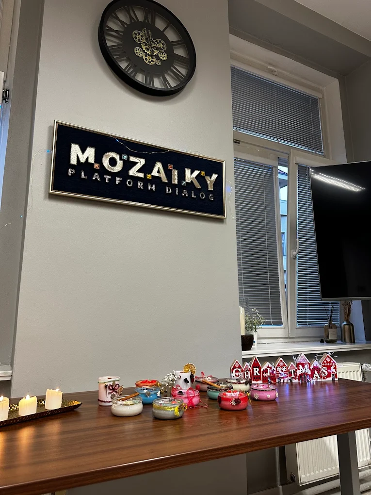 MOZAIKY je nezisková organizace založená v roce 2005. Usiluje o vytvoření dialogu mezi lidmi různých ras, národností, náboženství a názorů, kteří mají zájem o dosažení společných cílů. Cílů, na jejichž základě můžeme pomáhat vytvořit lepší budoucnost, z níž bude možné jednou vysílat poselství porozumění, tolerance a pochopení pro všechny.