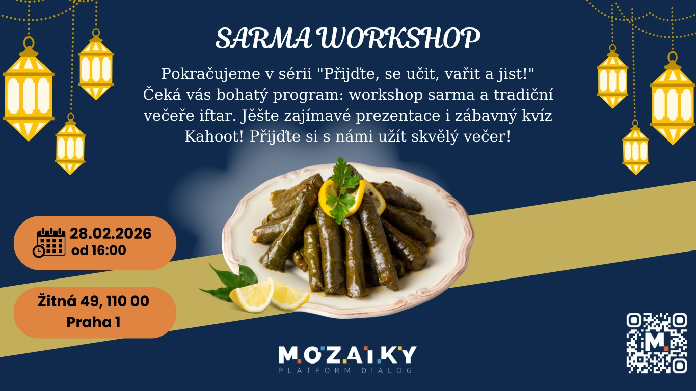Pokračujeme v sérii setkání „Přijďte se učit, vařit a jíst!“. Tentokrát vás zveme na praktický workshop přípravy tradičního pokrmu sarma, který vyvrcholí společnou ramadánovou večeří
