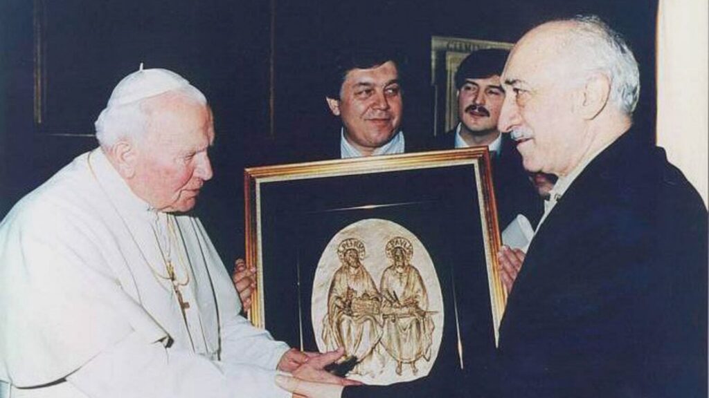 Od druhé poloviny 90. let se Gülen, který se narodil a vyrostl pod vlivem tureckého nacionalismu, postupně otevírá jiným kulturám a náboženstvím a setkává se s vůdci v různých částech světa. Mezi nimi se setkal také s Janem Pavlem II. a dopisoval si s papežem Františkem. Tyto jeho činy a otevřený postoj, zprostředkovaly Hizmetu rozměr mezináboženského dialogu. Dnes existuje mnoho lokálních uskupení – přítomných v mnoha částech světa – , které stojí v čele skutečného a autentického dialogu s lidmi jiných náboženských a kulturních tradic.